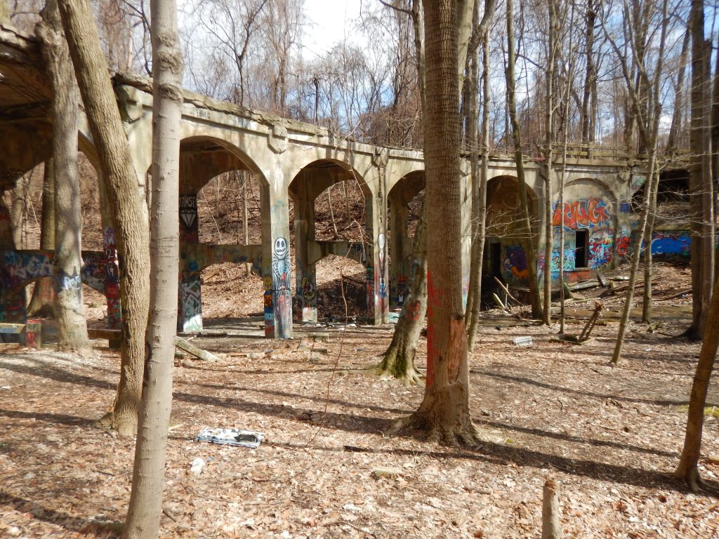 In between two storm systems my husband and I visited two parks. The first park was Hillandale Park. In this park was a bridge to no where. It was built in the 1930’s for a dwelling development. However, for some reason or another that development never happened. So it has sat in decay since then. While we were under the bridge taking pictures with the trees talking to us, it felt kind of creepy as if generations of people were still there watching us.