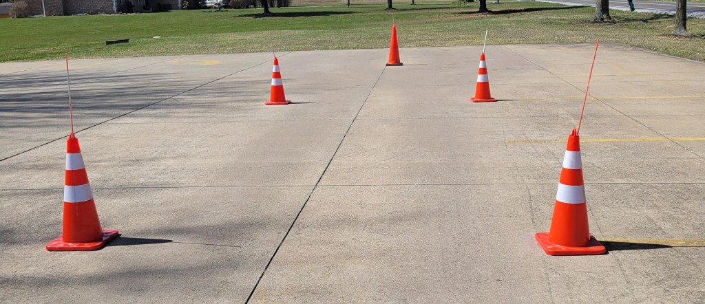 Finding those locations can be a task for the student. A Google search will not help them. There is nothing out there that helps parents and students find those cones. Generally for the first lesson, I have the student drive to one of these locations, so, they can practice on their own. However, sometimes the closest location is not close enough and I use the nearest parking lot with the cones in the car I am using.